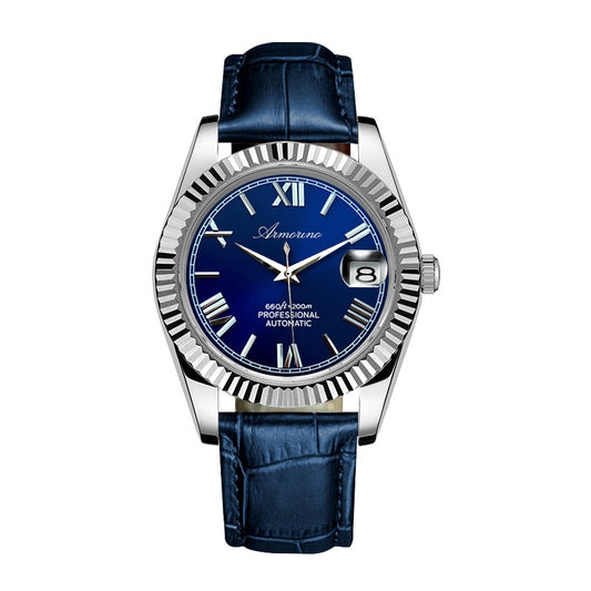 Armorino New Era – Blue Edition Reloj Automático Plata con Dial Azul y Correa de Acero y Cuero Azul