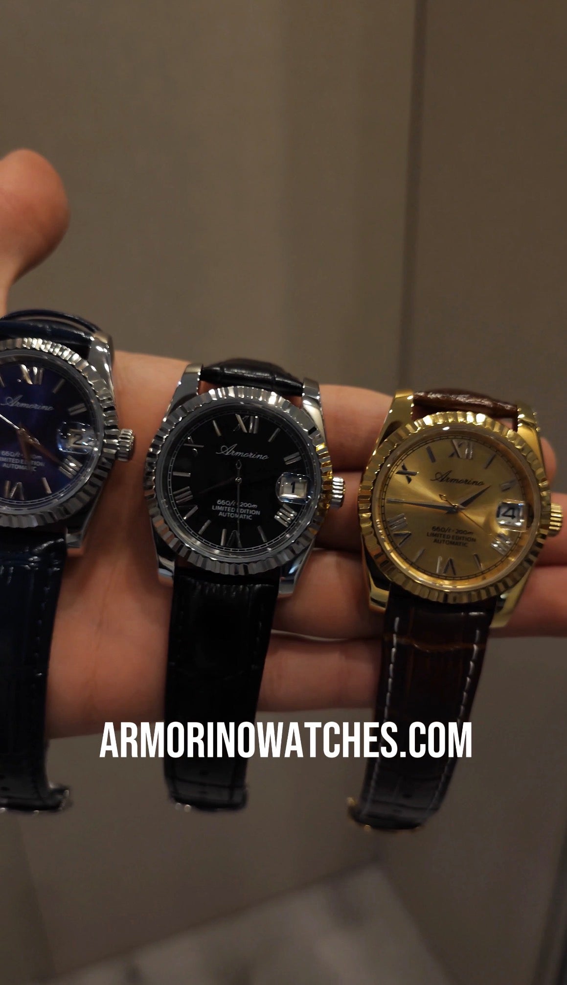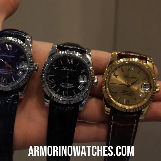 Un reloj diseñado para quienes entienden que cada minuto cuenta en el camino hacia sus metas. El Armorino “New Era – Gold Edition” simboliza la determinación del soñador que convierte sus objetivos en realidad. Su caja dorada, refinada y atemporal, refleja carácter y ambición, mientras que su versatilidad se eleva con dos correas intercambiables: una correa de acero inoxidable para transmitir presencia y autoridad, y una correa de cuero marrón que aporta calidez, distinción y estilo en cualquier ocasión.